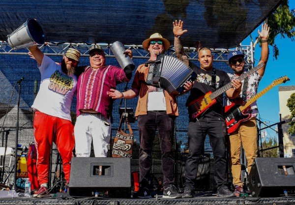 Los Bahianatos [by*ya*NAH*tos] specialize in Colombian Cumbia and Vallenato featuring the button accordion, with a little psychedelic Peruvian Chicha on electric guitar thrown in for good measure. Founded in Oakland, California, during the early months of the pandemic, Los Bahianatos remain the premier cumbia and vallenato group in ‘La Bahia’ de San Francisco.